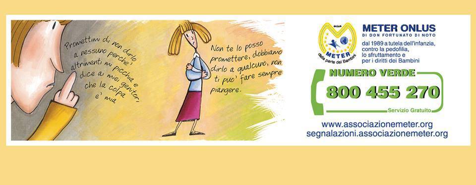 Importante anche il messaggio che Don Di Noto ha pubblicato un paio di giorni fa in cui racconta una “mezza vittoria”: “Una Società web, dopo una attenta e accurata segnalazione di materiale pedopornografico rinvenuto dall’Osmocop, ci ha comunicato quanto segue: ‘I file di abuso sessuale su minori che Meter onlus ha segnalato a Xup.in Abuse Management, dopo una attenta verifica, sono stati tutti rimossi’. Il problema che poniamo è cruciale: non basta la rimozione: la necessità è individuare gli abusatori, chi divulga, chi possiede e soprattutto le vittime. Noi continuiamo….come sempre nell’assoluto silenzio dei media e non solo.”