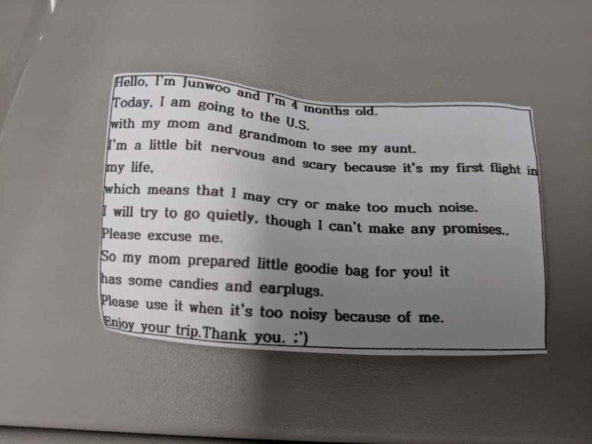 Una mamma che doveva viaggiare su un volo intercontinentale da Seul a San Francisco insieme a suo figlio neonato, ha pensato a una curiosa iniziativa.