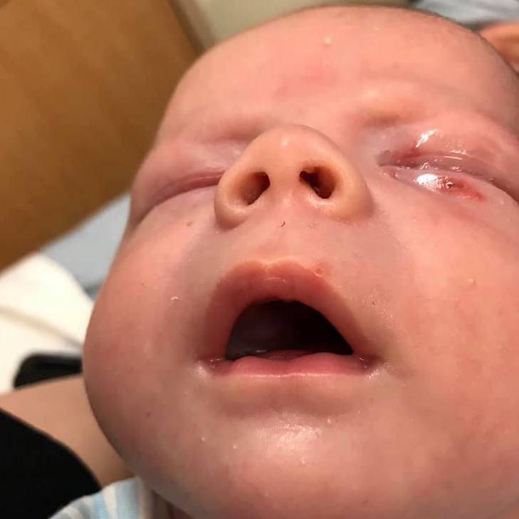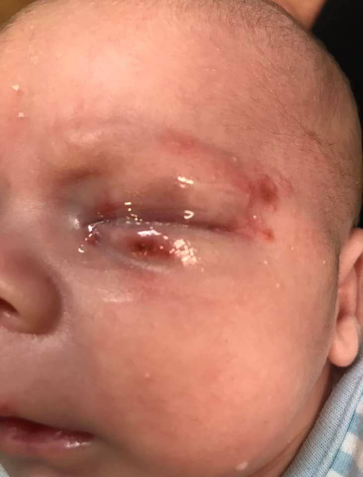Noah, aveva appena 4 settimane quando sua mamma, Ashleigh White, ha notato che il suo occhio destro si era gonfiato ed era pieno di vesciche. La donna, che vive nel South Yorkshire, ha portato subito il figlio dal medico, che ha disposto il ricovero al Barnsley Hospital. Qui gli è stato diagnosticato l’Herpes simplex virus 1.