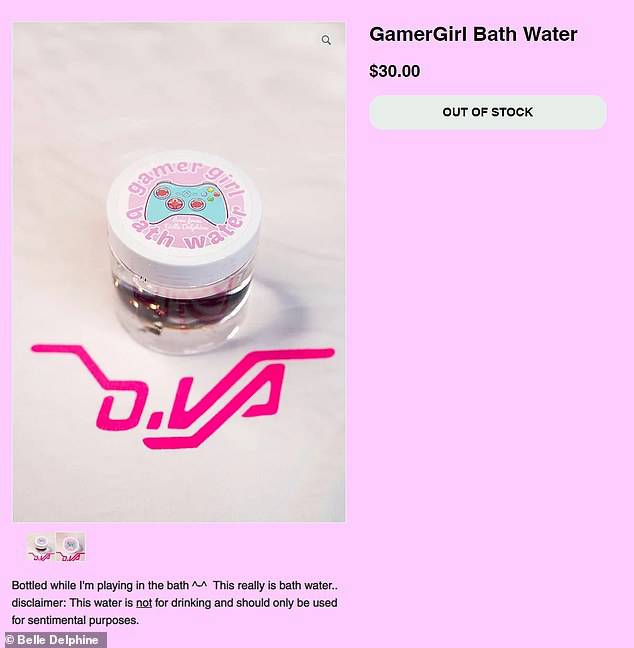 Belle Delphine ha deciso di vendere l’acqua usata nella sua vasca da bagno sul suo negozio on line al prezzo di 30 dollari. Nella dicitura sotto la foto del prodotto c’è scritto: “Non è potabile e dovrebbe essere usata solo per scopi sentimentali”.