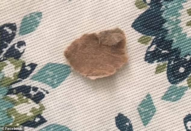 Una foto del pezzo di cartone trovato attaccato alla parte alta della bocca.