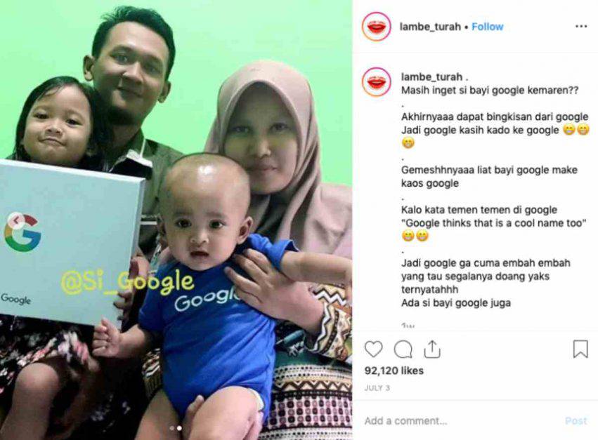 A Bekasi, a Ovest di Java un bambino è stato chiamato Google, come la nota azienda americana. Dopo qualche settimana la notizia ha fatto il giro del web raggiungendo anche il ramo asiatico del colosso informatico.