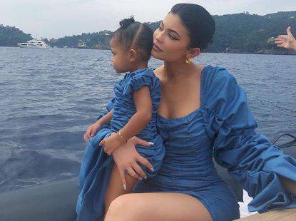Anche per Kylie Jenner visti coordinati con la figlia Stormi. L’imprenditrice statunitense è in vacanza a Capri e posa su un gommone con la figlia che indossa il suo stesso vestito: maniche lunghe e arricciate nella versione da adulto e con maniche corte a sbuffo nella versione baby.