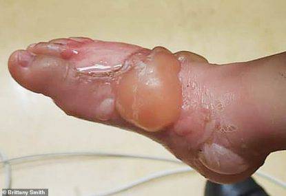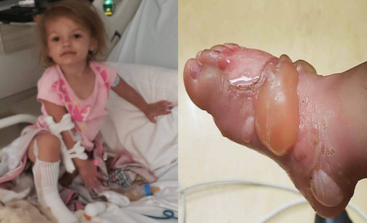 Le foto che la mamma ha condiviso anche con molti media sono terribili, si vedono i piedi con ustioni di terzo grado nella parte superiore e grandi vesciche che le avvolgono le caviglie.