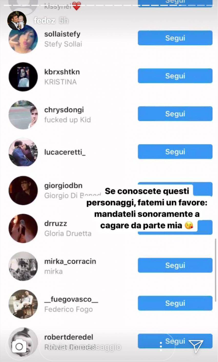 Il cantante ha anche condiviso l’elenco dei vari utenti che hanno messo un like al messaggio di chi ha scritto l’insulto rivolto a Leone.