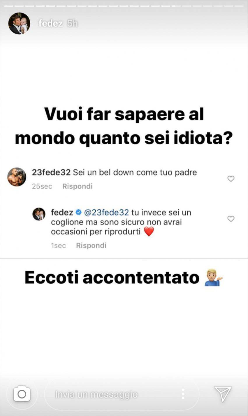 Di recente, attraverso il profilo Instagram del padre alcuni haters (odiatori) si erano scagliati contro il bimbo, di un anno, che Fedez ha avuto con Chiara Ferragni.