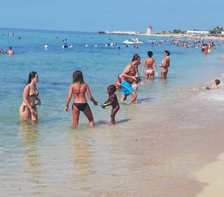 Alcuni bagnanti si sono offerti come baby-sitter per la figlia di tre anni di un’ambulante che vendeva la sua merce sulla spiaggia di San Vito lo Capo.
