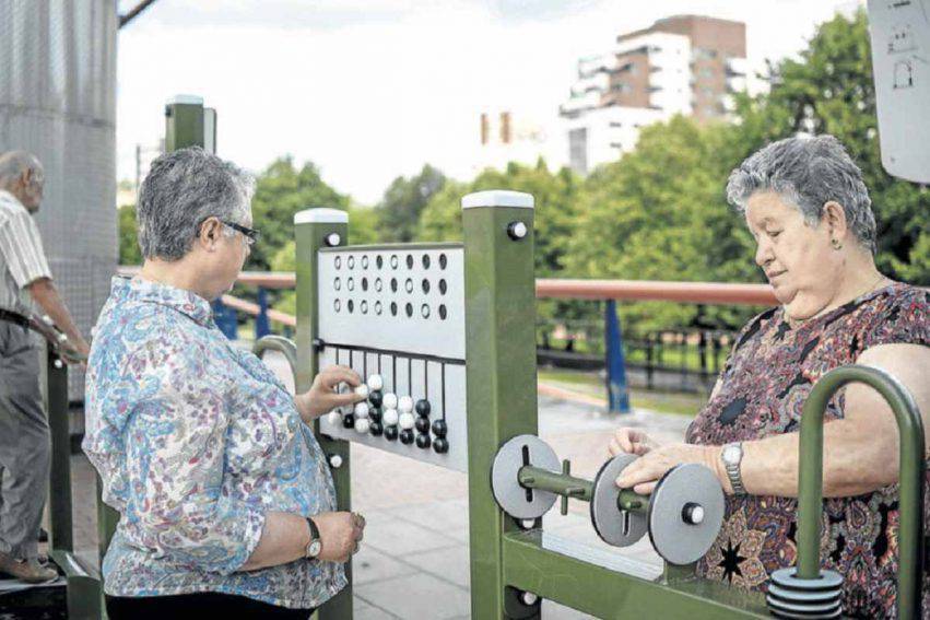 In Spagna ci sono dei parchi attrezzati per intrattenere i nonni.