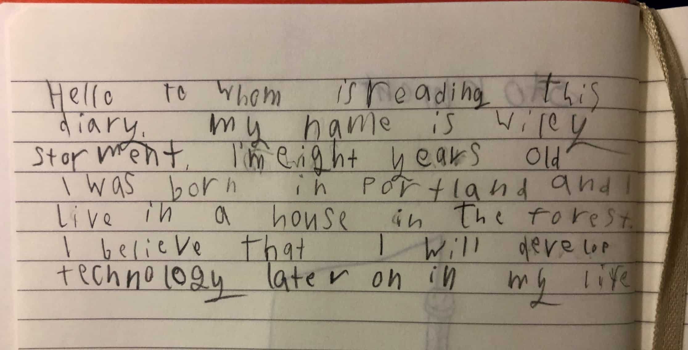 A questo punto il papà condivide la foto della pagina di un diario di Wiley trovato quel giorno.