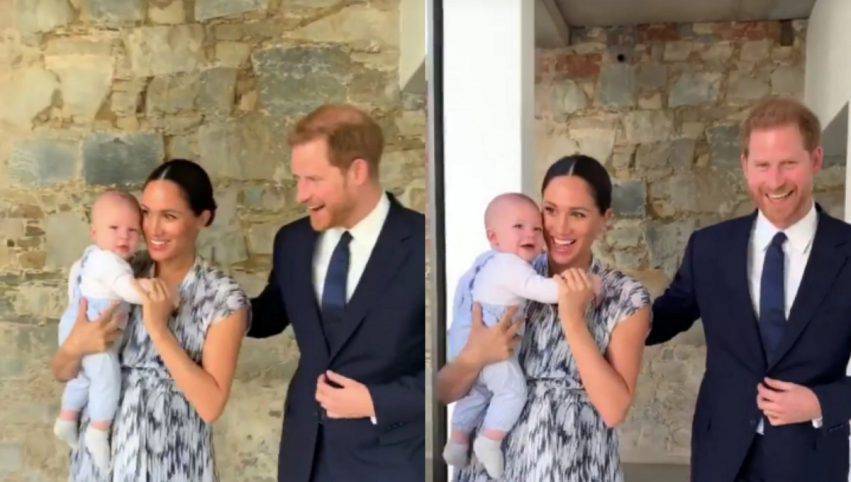 Nel video Archie è in braccio alla mamma che cammina affianco ad Harry e Archie che sorridente ascolta il papà e alla fine sembra anche che gli risponda.
