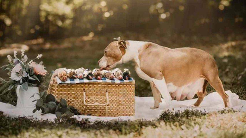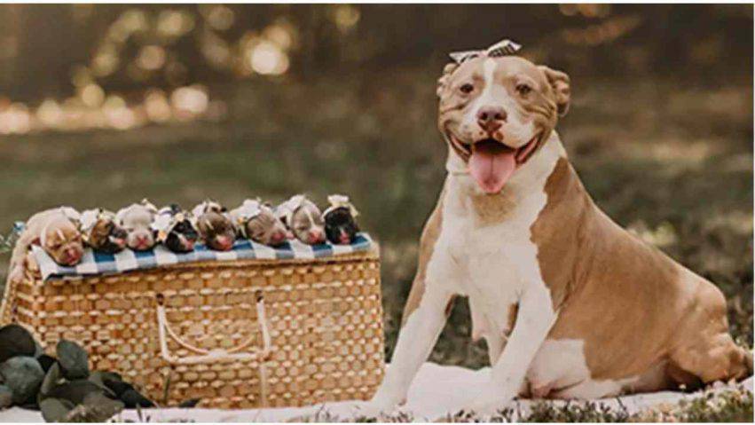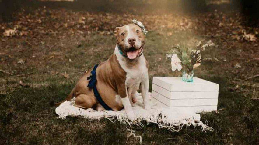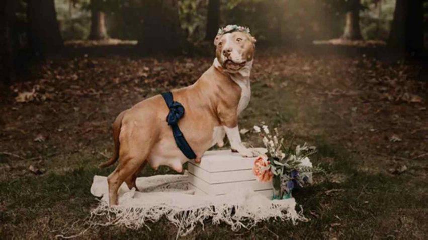 Un pitbull abbandonato perché in attesa dei cuccioli ha ricevuto un bel servizio fotografico per trovare una casa accogliente.