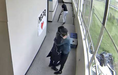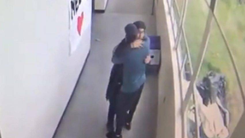 Insegnante abbraccia uno studente armato entrato in classe armato