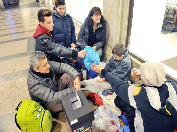 Sono ormai 4 anni che padre, madre ed i 5 figli ogni venerdì sera partono dalla periferia di Torino, Pianezza, per arrivare in Piazza San Carlo, una delle piazze più importanti della città. Non sono qui per una passeggiata, per shopping o per andare a mangiare in uno dei bellissimi bar o ristoranti della zona, ma per aiutare i loro “amici” senzatetto. In tutti questi anni tra la famiglia Marcon ed i senzatetto si è instaurato un rapporto di amicizia, di fiducia. Quando arrivano c’è chi li aiuta a portare i pacchi dal parcheggio formando una catena umana. Si dividono il thé e il caffè caldo nei thermos, i biscotti, i grissini. Poi passano ai vestiti, alle coperte, come riportato da Il Corriere.