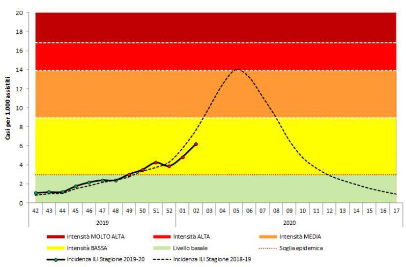 Secondo i dati disponibili del bollettino di FluNews-Italia, riferiti alla seconda settimana del 2020, dall’inizio della sorveglianza sull’epidemia di influenza sono stati segnalati 28 casi gravi di cui 5 deceduti. Durante la seconda settimana del 2020, poi, circa il 76% dei casi di sindrome simil-influenzale riferisce di non essere stato visitato da un medico del Servizio sanitario nazionale ma di aver avuto una sindrome simil-influenzale.