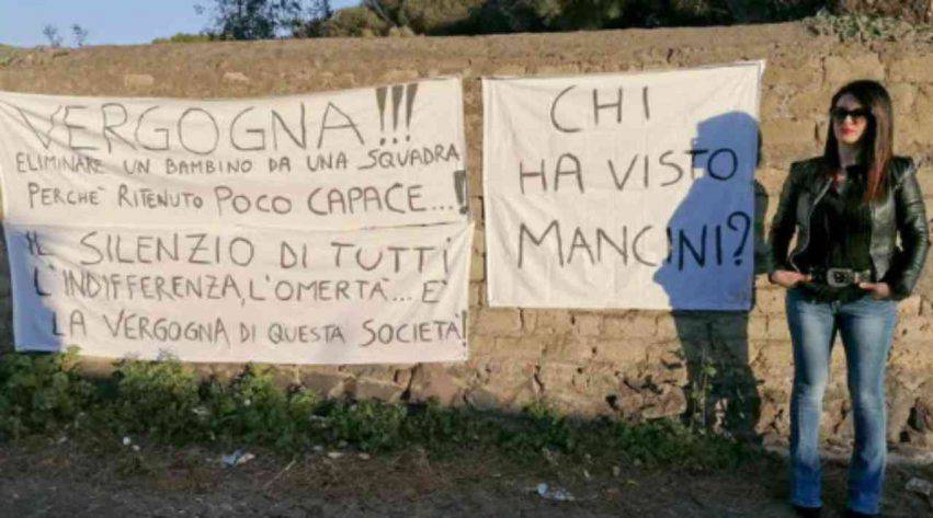Virginia, mamma di un bambino di 6 anni di Torre del Greco, ha deciso di intraprendere una inusuale protesta perché il figlio viene sistematicamente escluso dalle convocazioni per la partita. La donna ha quindi deciso di affiggere degli striscioni all’esterno del centro sportivo dove la mamma accompagna il figlio per gli allenamenti tutti i giorni. “Dov’è Mancini?” chiede la mamma riferendosi all’allenatore della Nazionale. La storia dell’esclusione del figlio va avanti da mesi. “Vergogna. Escludere un bambino da una squadra perché ritenuto poco capace” ha scritto su uno striscione affisso all’esterno della squadra di calcio. A quanto pare nessuno si è interessato a quanto stava accadendo al figlio.