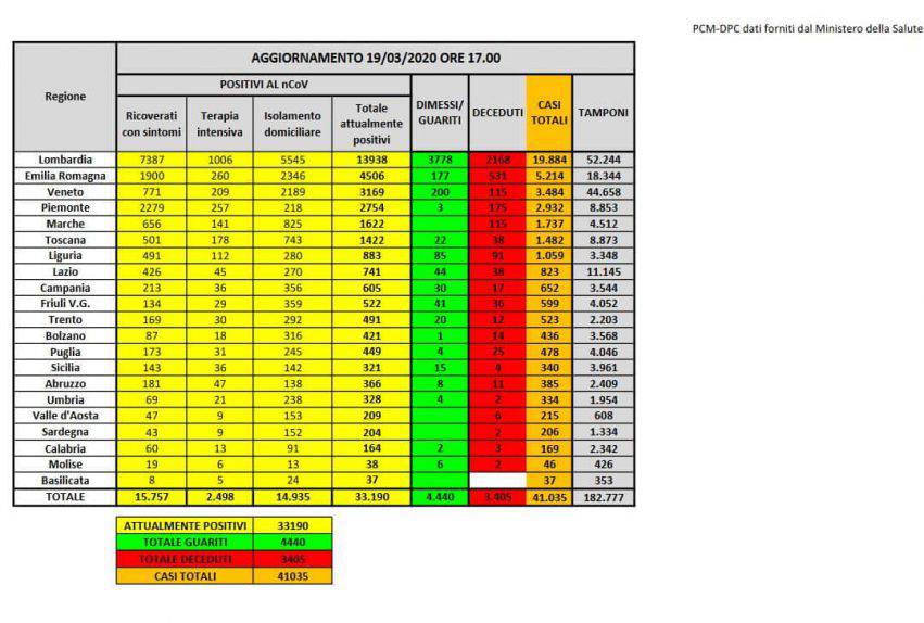 Tra i 33.190 positivi al Coronavirus alla data del 19 marzo:
