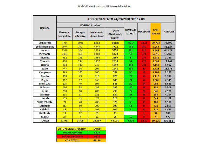 Casi di Covid-19 in Italia aggiornati a martedì 24 marzo 2020