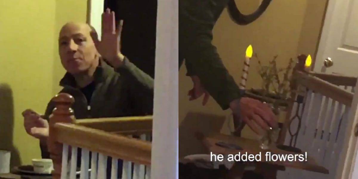 A poco a poco il papà ha alzato il livello dei pasti, aggiungendo, per esempio, le candele. “Mio papà ha iniziato ad aggiungere i fiori e altre cose che fioriscono, cercando di superare la decorazione del giorno prima, la pigna, le candele”. Anche la mamma si è unita al padre, come si vede dai video.