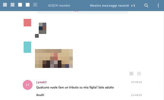 Già questo basterebbe a far accapponare la pelle, ma l’odio, il disprezzo degli uomini che partecipano a questa chat non si ferma qui, perché nel gruppo vengono pubblicati anche numeri di telefono, privati o del lavoro, i recapiti social, con lo scopo di “rendere loro la vita impossibile“, alle vittime. Nel calderone finisce anche materiale pedopornografico, a volte fornito dai padri stessi delle minorenni, dove gli utenti chiedono “chi ha dodicenni?”. Un utente ribatte: “mentre il 90% mette m***a, io metto una bella tredicenne” e così via. In realtà questa chat è nata molto tempo fa, ma quando raggiunge il suo picco di utenti viene cancellata da Telegram perché “utilizzato per diffondere contenuti pornografici”, poi però un messaggio reindirizza gli utenti orfani a un gruppo di riserva, sempre con immagini e filmini che sarebbero dovuti rimanere privati.
