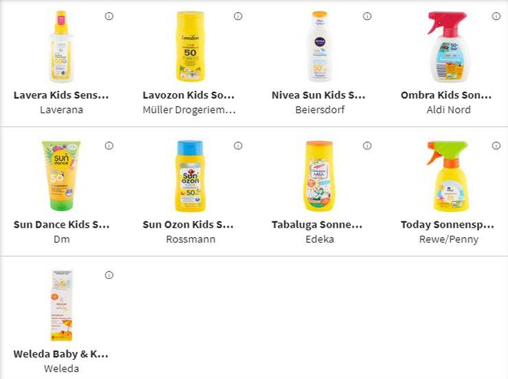Altri nove hanno avuto un risultato “buono” e tutti gli altri “mediocre”; tranne due prodotti che sono risultati insufficienti. Dopo i risultati del test, tra le peggiori c’è la Garnier Ambre Solaire Kids Sensitive Expert + Spray con SPF 50+ e la La Roche-Posay Anthelios Dermo-Pediatrics 50+ Lotion. Il giudizio negativo è stato assegnato per la presenza di omosalato, un filtro UV discutibile che può entrare nel flusso sanguigno e interferire con il sistema ormonale.