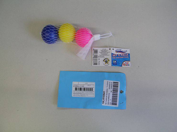L’altro prodotto è il Set 3 palle per racchettoni “Tu Giochi” perché è risultata la presenza di ftalati (DEHP: valore pari a 23% valore soglia 0,1%):