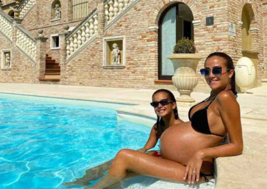 Lo testimonia anche il pancione della Palmas. Come accompagnamento alla foto ha showgirl ha scritto: “una domenica perfetta” e all’amica Beatrice Valli che le chiede quanto manca lei risponde: “manca poco, ma non pochissimo“.