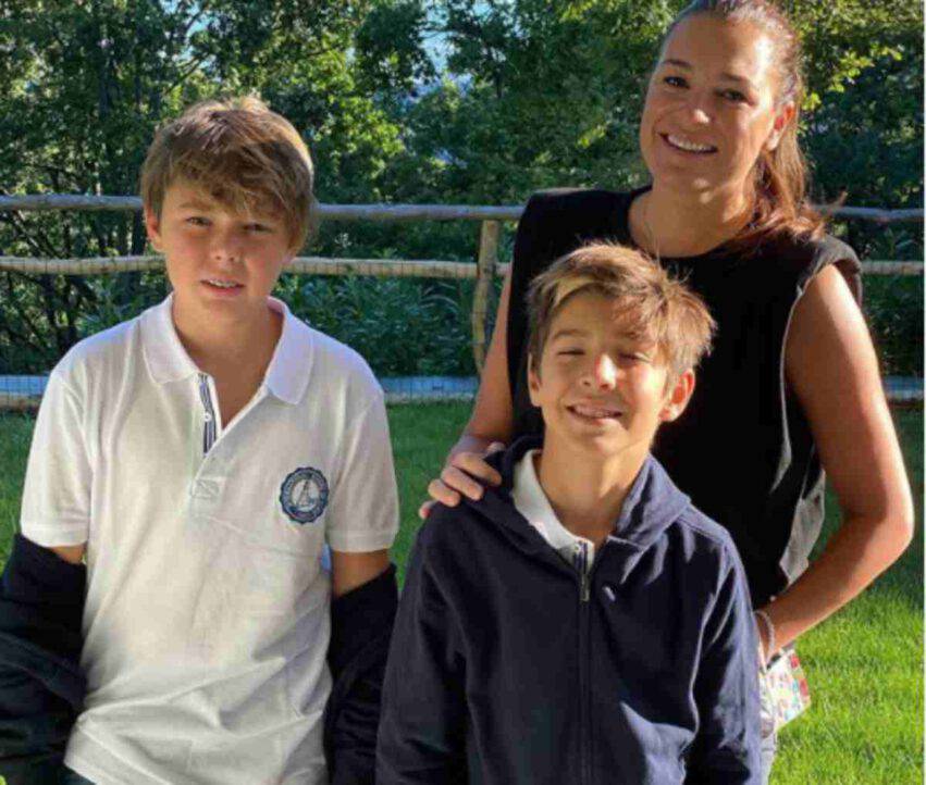 Iniziamo dai figli di Alena Seredova: Louis Thomas e David Lee Buffon vengono ritratti insieme alla mamma nel cortile della loro scuola.