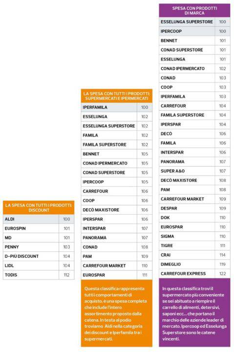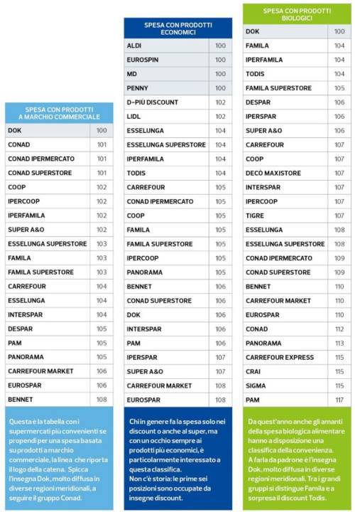 L’associazione ha cercato di aiutare i risparmiatori italiani ad orientarsi nelle città alla ricerca dei supermercati più convenienti dividendoli per città e posizionamento sul mercato. Dai supermercati all’iper mercati, dagli Store gourmet ai discount.