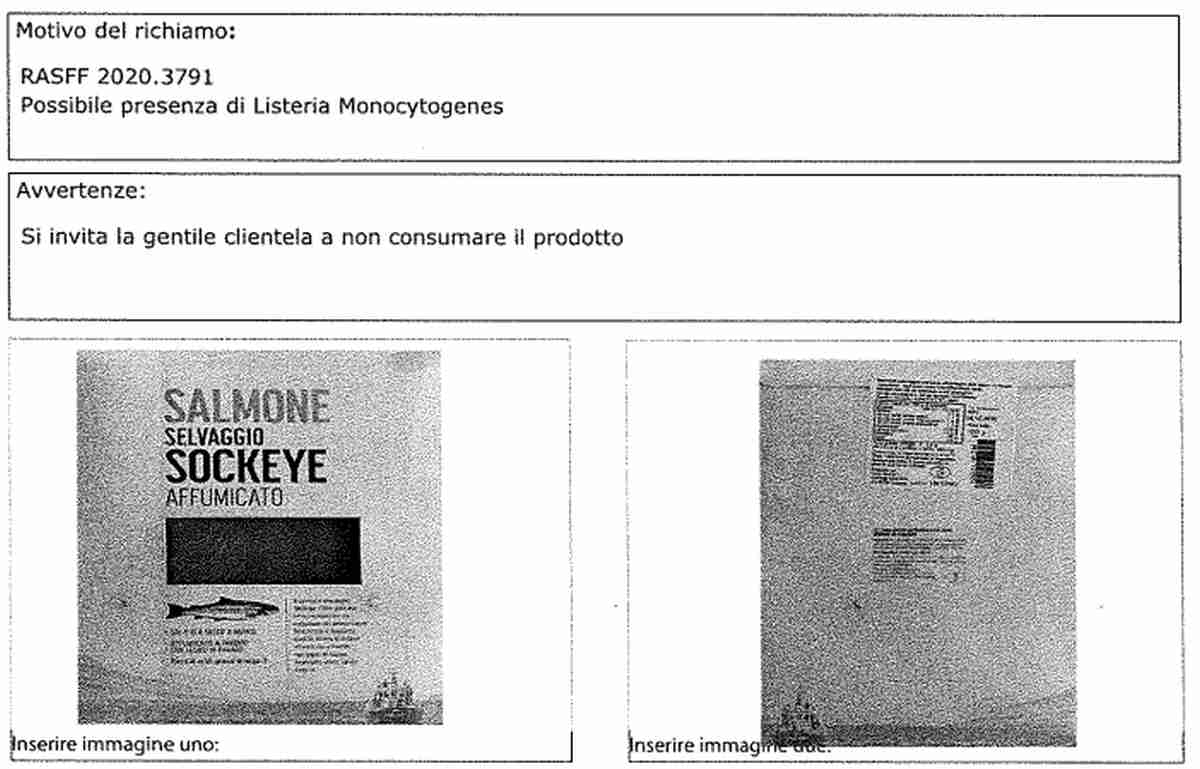 Il motivo del richiamo è una possibile presenza di presenza di “Listeria monocytogenes”. Come per tutti i richiami, l’avvertenza è quella di non consumare il prodotto e di riportarlo al punto vendita per avere una sostituzione dell’articolo o un rimborso. Vi ricordiamo che non c’è bisogno della prova d’acquisto.