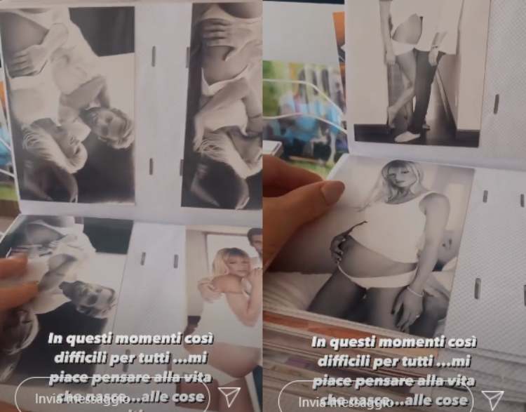 “E’ una cosa che veramente, non so come dirvi, a me manca tantissimo. Guardate qua appena nata Sole” commenta osservando le foto della prima figlia neonata avuta con suo marito Tomaso Trussardi. “In questi momenti molto difficili mi piace pensare alla vita che passa, ai momenti positivi”.
