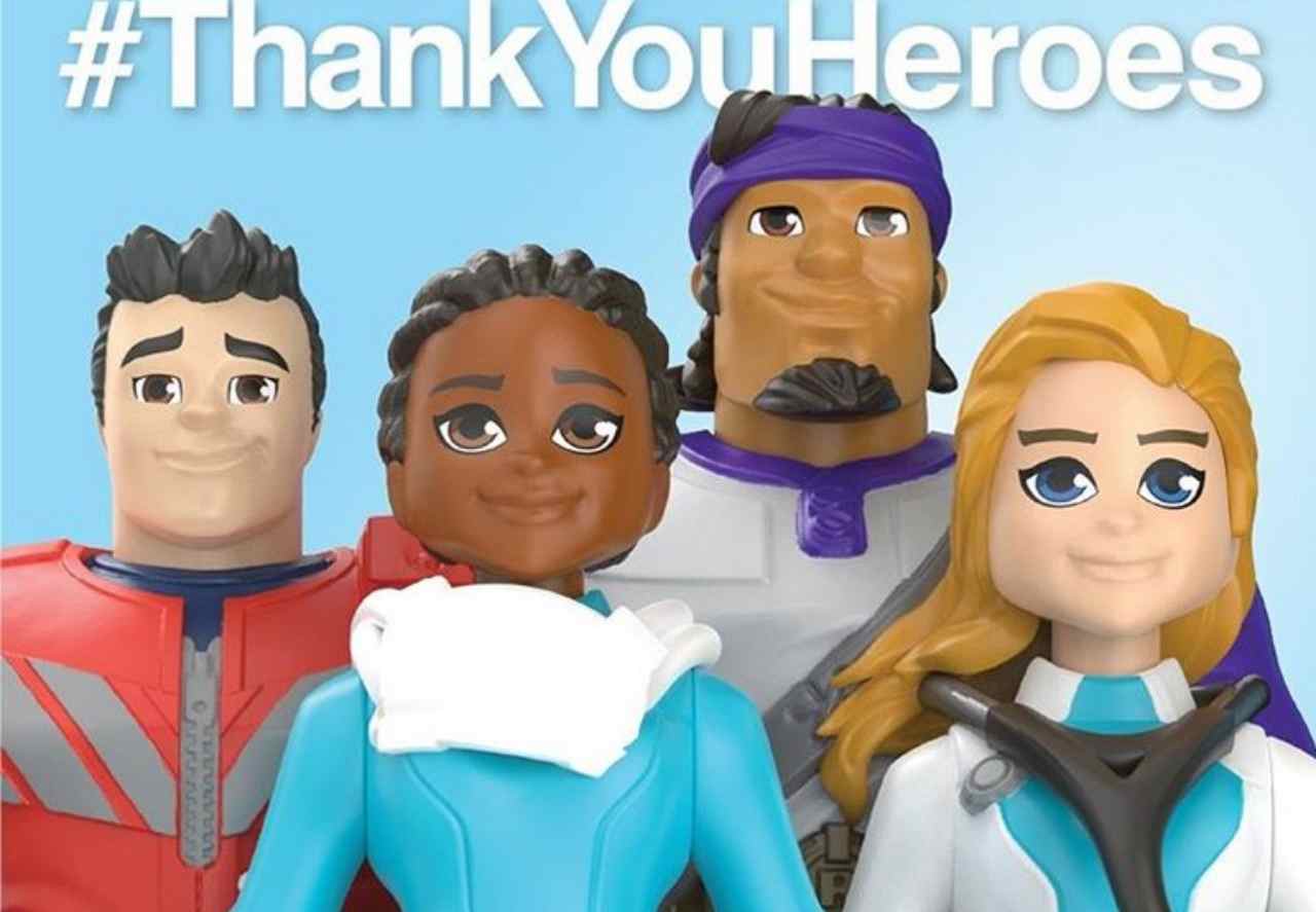L’azienda ha lanciato una nuova collezione di giocattoli, intitolata “ThankYouHeroes”, dove ha inserito una serie di pupazzi che raffigurano proprio gli eroi del Covid19, tra tutti medici e infermieri.