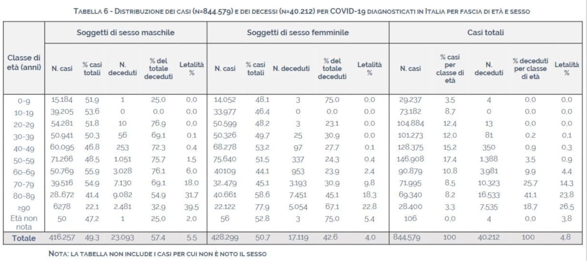 I casi sono 29.237 nella fascia di età 0-9 anni e 73.182 n quella 10-19 anni. Il totale fa 102.419 casi, da 0 a 19 anni. La tabella dal bollettino ISS (clicca per ingrandire).