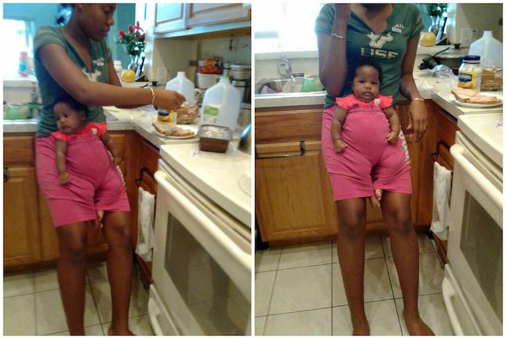 “Sono dovuta uscire di casa per alcune commissioni, quindi ho chiesto a mia nipote di fare da babysitter alla piccola Ava. Qualche minuto dopo ho ricevuto un messaggio con allegata una foto. Spiegava che J’Ann voleva farsi un panino ma non voleva lasciare la bimba fuori dalla sua vista.