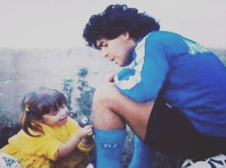 Il lungo post su Instagram è una dedica al padre accompagnata da una foto che la ritrae quando era solo una bambina accanto al Pibe de Oro con la divisa del Napoli.