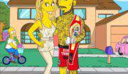 Sullo sfondo ci sono sempre loro, i Simpson: ecco allora che dietro Michelle Hunziker compare un Homer in mutande, con Briatore un Burt armato di fionda pronto per la prossima marachella, con Francesco Totti ancora Homer in costume da bagno e l’elenco potrebbe proseguire ancora a lungo.