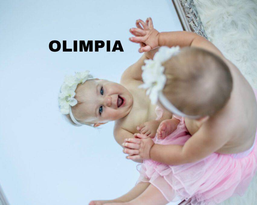 Il nome Olimpia deriva dal greco e si riferisce al monte degli dei Olimpo, significa quindi “abitante dell’Olimpo” o “celeste”.
