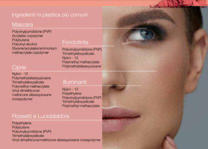 - I nomi degli additivi a base di plastica riconoscibili in etichetta e nell’INCI dei trucchi.