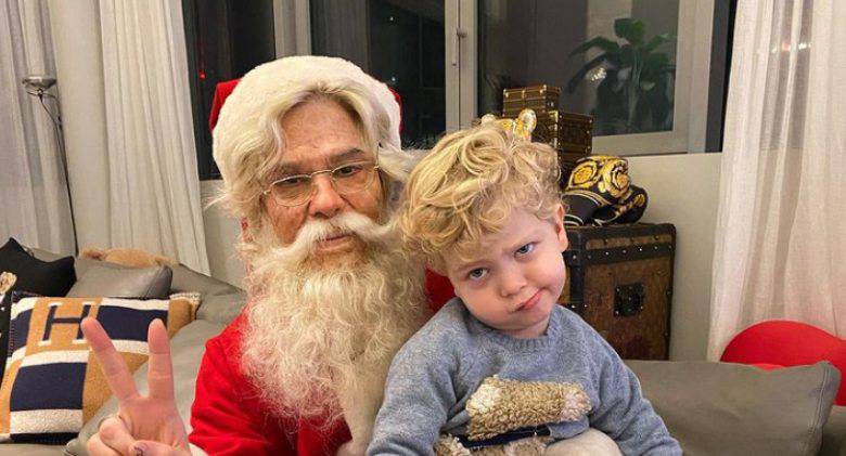 Il cantante invecchiato e di rosso vestito, ha inscenato una visita serale al figlio corredata di pacchetti e di fotografie: tuttavia la visita non è stata particolarmente gradita dal bambino che, nella foto, ha mostrato tutto il suo disappunto.