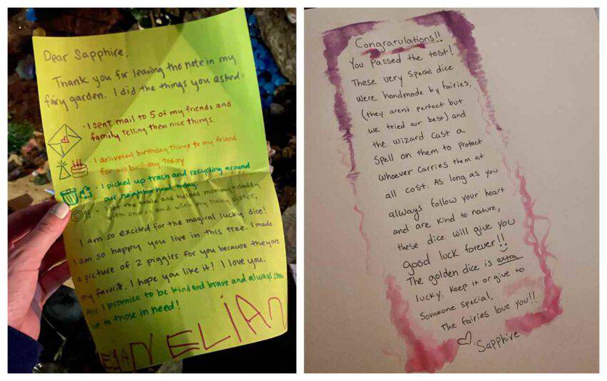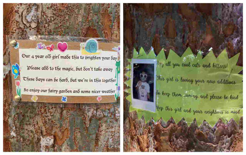 All’interno c’era un giardino per le fate e una lettera da parte di una bambina di 4 anni che si sentiva sola durante la quarantena e voleva diffondere un po’ di allegria.