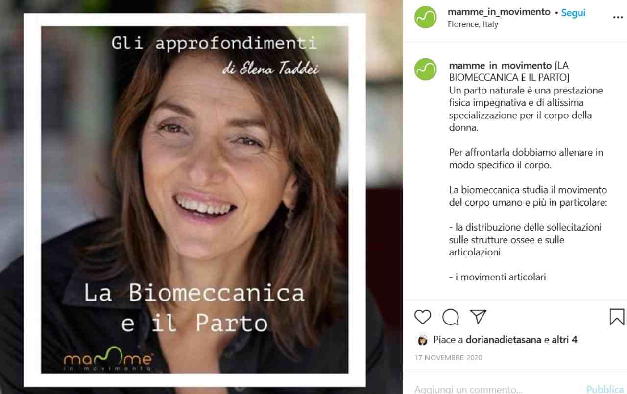 Il corso è stato creato da Elena Taddei, docente di Scienze motorie a Firenze, la quale ha creato una pagina su instagram chiamata “Mamme in movimento”.