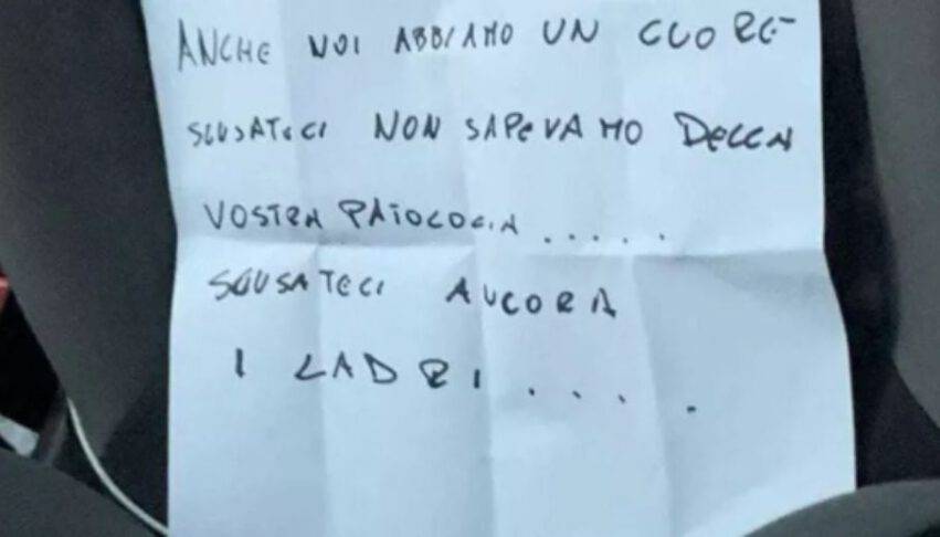 Dopo poche ore, è giunta una buona notizia: l’auto di Maria Elena è stata restituita! I malviventi hanno fatto ritrovare lauto rubata con un messaggio all’interno: “Anche noi abbiamo un cuore, scusateci, non sapevamo della vostra patologia, scusateci ancora”, messaggio postato dalla figlia della donna su Facebook. Al tal proposito, Rita ha fatto sapere: “Averla ritrovata rappresenta un segno di speranza, quel briciolo di fiducia per il genere umano che non dovrebbe abbandonarci mai”.