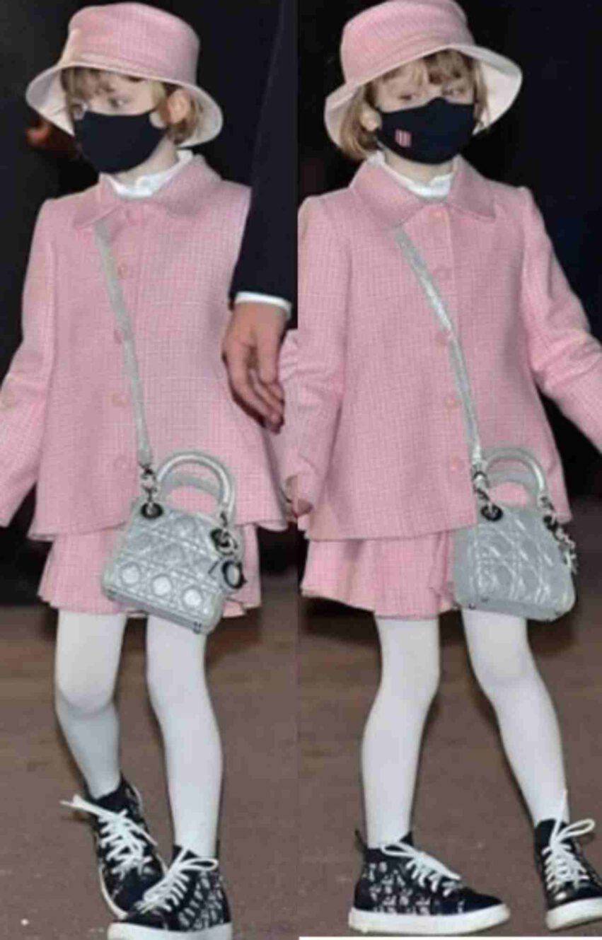 Gabriella infatti indossava un completo Dior, ovvero un tailleur pied de poule rosa e le sneakers, queste ultime simili a quelle del fratellino Jacques.