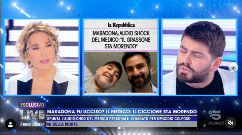 A Live – Non è la D’Urso, il salotto domenicale della conduttrice Barbara D’Urso, Diego Armando jr ha rilasciato un’intervista in merito ai nuovi risvolti nelle indagini sulla recente morte del padre. “Il grassone sta morendo“: è questo l’audio sconcertante che incrimina i medici che avrebbero dovuto curare la salute dell’ex calciatore.