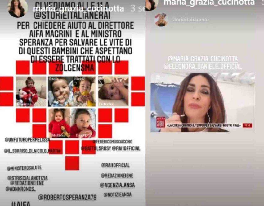 Maria Grazia Cucinotta, pensando di dare maggior visibilità possibile al loro appello ha condiviso alcuni stralci dell’intervista sulle sue storie di Instagram dove ha 422 mila followers.