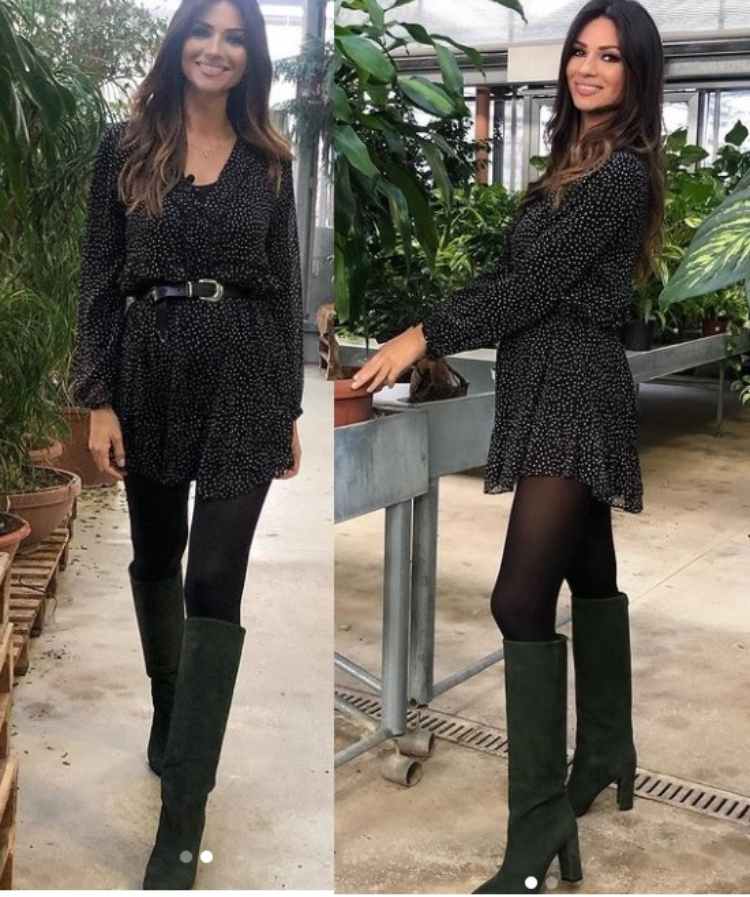 In occasione di una recente comparsata a Verissimo ha sfoggiato un abito Atelie Emé in satin marocain, come si legge su Tgcom 24.