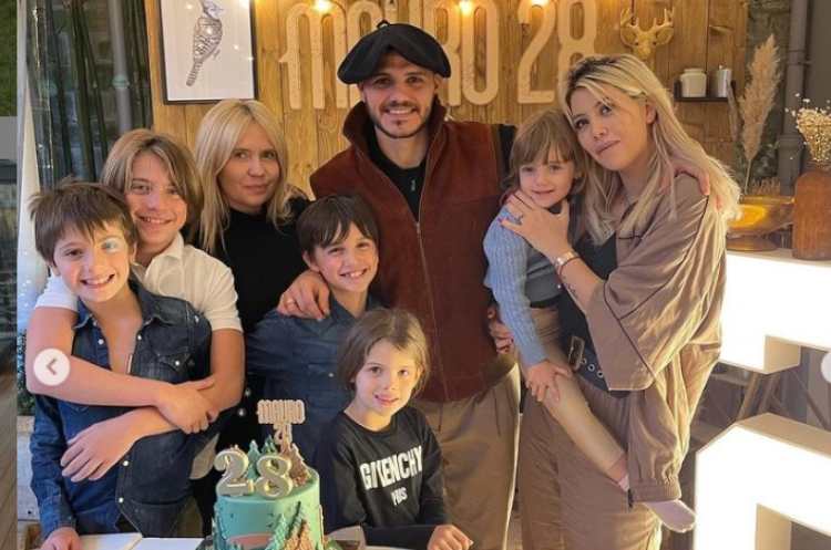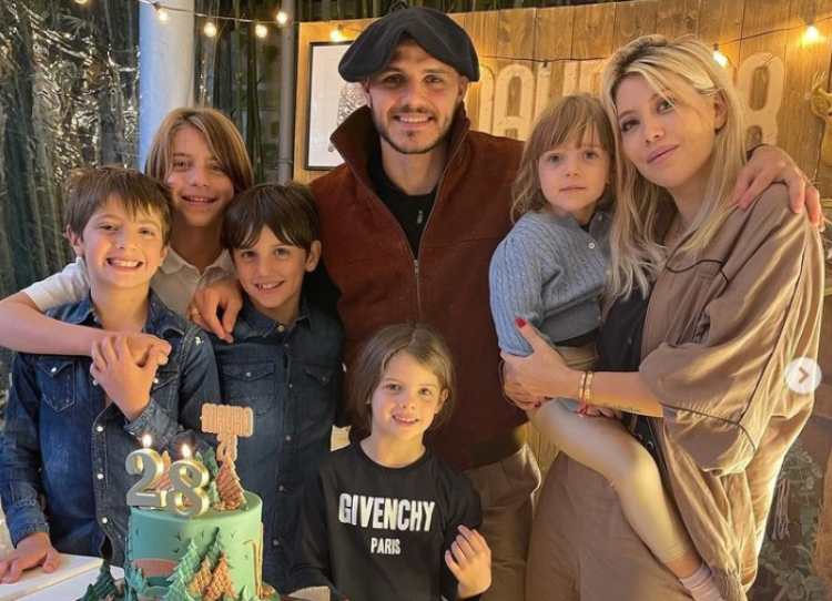 Nella foto pubblicata sul profilo Instagram Wanda Icardi ci sono loro: Wanda, Mauro, che compie 28 anni, e tutti i 5 figli.