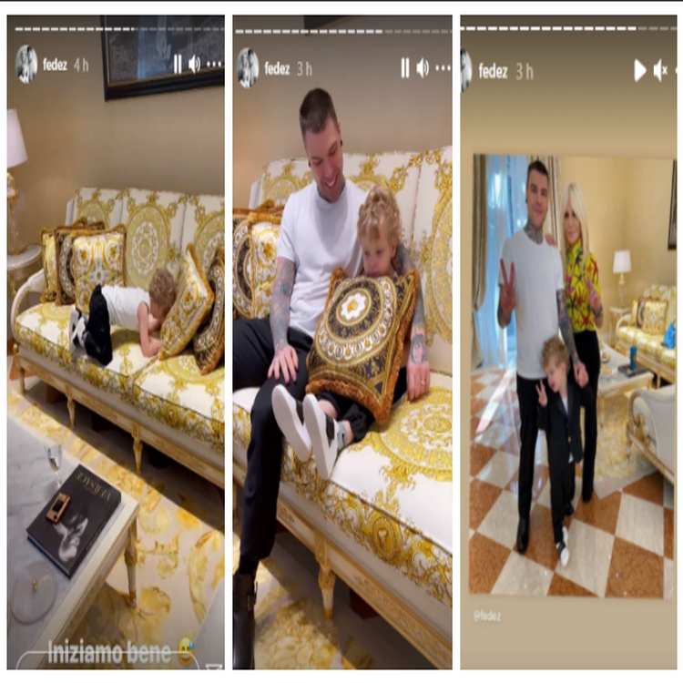 Prima di fare questo si è recato con la famiglia nella maison di Donatella Versace per scegliere gli abiti per le varie serate e sui social con varie storie ha dato delle piccole anticipazioni. Se l’influencer era li per aiutare il marito nella scelta più giusta del look, il piccolo Leone si è invece divertito a correre nel salone ed a cercare di fare “danni“. Una scena molto divertente è quando Fedez rincorre Leone che si tuffa sul divano della “zia Donatella”: “Amore non mettere i piedi sul divano di Donatella“, troppo tardi.