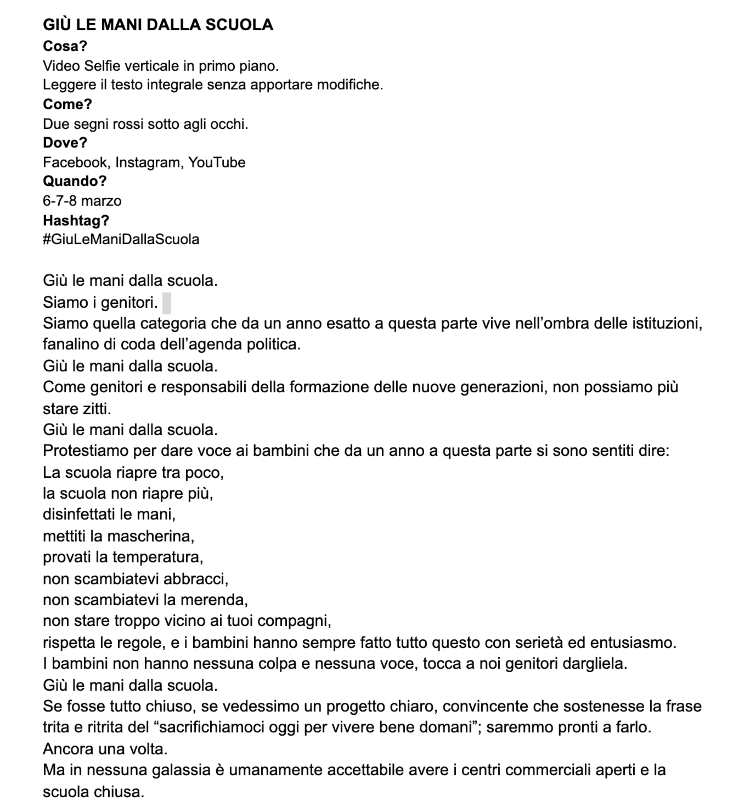 Giù le mani dalla scuola, dal testo scritto alle mamme influencers