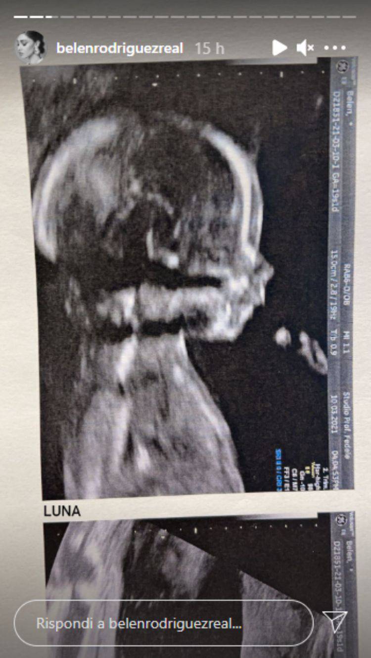 La Rodriguez sta vivendo i mesi della gravidanza con grande spensieratezza e non disdegna di mostrare il pancione con grande orgoglio. La showgirl è al settimo mese di gravidanza e ha voluto mostrare la prima foto di Luna Marì nel pancione. In una storia, infatti, Bèlen ha condiviso l’ecografia della piccola dalla quale si intravede il suo grazioso faccino.
