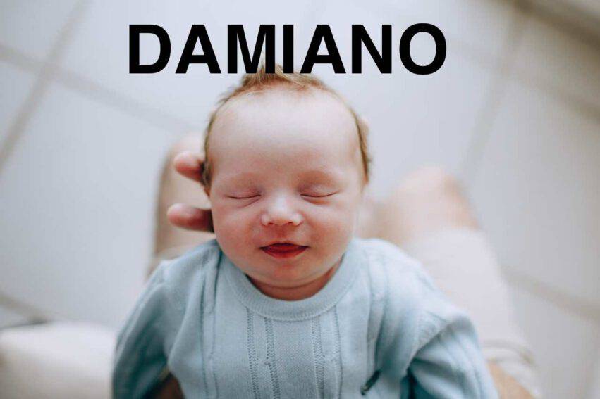 Il nome deriva dal latino Damianus, e secondo alcune fonti l’origine è Damia, la divinità greca della fertilità per cui Damiano significherebbe “devoto a Damia” o “discendente di Damia”. Altre fonti lo associano al verbo greco damao che vuol dire “domare”, “sottomettere”, da cui deriva anche il termine Damaso, ovvero “domatore”. Altre ancora, invece, lo riconducono al termine greco damos cioè “gente”, quindi “uomo del popolo”.